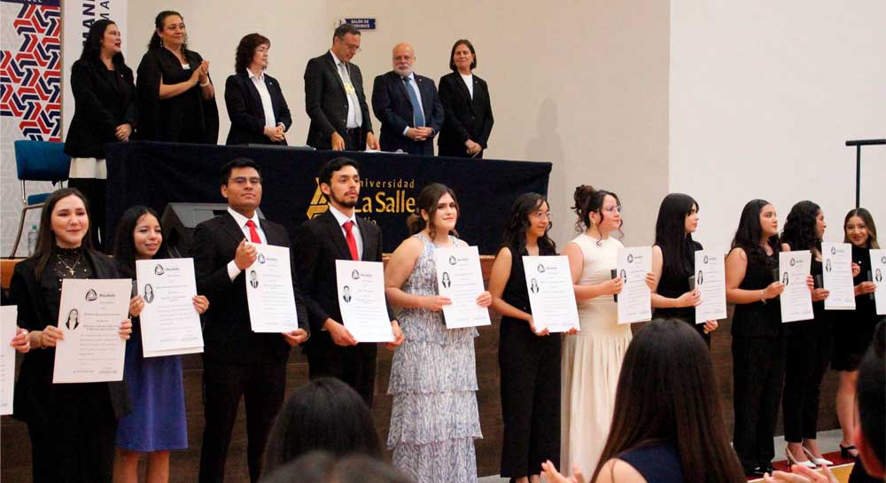 Más adelante, se realizó la entrega de títulos por excelencia académica a egresados de las licenciaturas en Contaduría Pública, Entrenamiento Deportivo, Gestión y Operación de Servicios Gastronómicos, Ingeniería en Automatización y Control Industrial, Negocios Internacionales y Psicología.