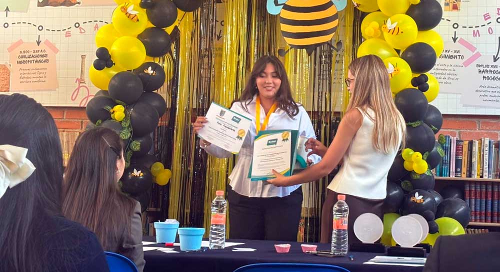 La estudiante de preparatoria Campus Juan Alonso de Torres de la Universidad La Salle Bajío, Ana Sofía Zambrano Sevilla, fue campeona en la categoría individual en la competencia académica de deletreo en inglés “Spelling Bee”, dirigida a estudiantes de preparatoria y organizada por la Escuela para el Futuro.