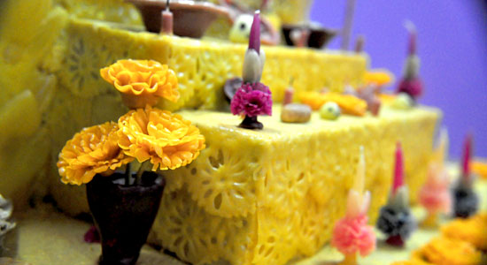 En todas las obras se pueden apreciar ornamentos en forma de flores con colores mexicanos, resaltan también aquéllas de festividades como el día de muertos y de temas religiosos.
