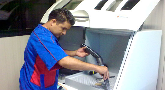 Por su parte, el equipo de impresión 3D, es una máquina capaz de traer a la realidad objetos modelados digitalmente en casi cualquier software CAD-3D. La máquina trabaja en base a la mezcla de polvo derivado del plástico y aglutinantes de multicelulosa, el modelo adquirido por la universidad imprime en monocromo (color hueso), aunque existen otros modelos que lo hacen a colores. Las dimensiones cúbicas máximas de impresión 3D son, 20cm x 20 x 25 de alto, una vez que el modelo sale de la impresora debe ser endurecido con alguna resina o químico para poder ser utilizado y/o darle algún acabado.