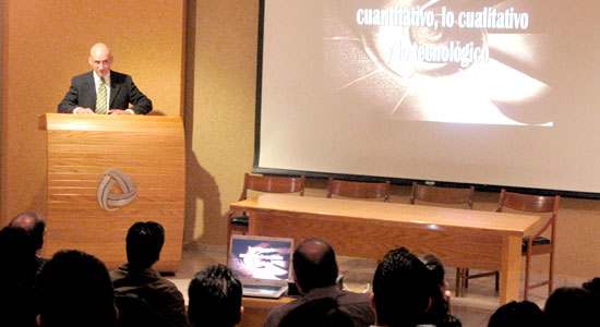 Luego de escuchar el mensaje del Rector de la Universidad, dio inicio la Conferencia Magistral: Perspectivas Cuantitativa, Cualitativa y Tecnológica de Investigación a cargo del Dr. Francisco Fernando García Córdoba, Profesor e Investigador del Centro de Investigaciones Económicas, Administrativas y Sociales (CIECAS) del Instituto Politécnico Nacional y autor del libro La investigación científica. Al término, recibió de manos de Zavala Berbena un reconocimiento y una postal Lasallista, impreso original en serigrafía, en el que el artista plástico Makabeo utilizó la técnica del `floritismo´ para representar un espacio de esta casa de estudios.