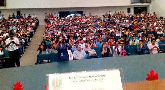 El M.T.I. Enrique Aguilar Vargas, coordinador y catedrático de la Facultad de Ingeniería en Computación y Electrónica de nuestra Universidad, fue uno de los dos conferenciantes que representó al país en este ciclo de ponencias con el tema de “La era postPC y tendencias en dispositivos móviles 2011-2015”, ante un público de más de mil asistentes en el Teatro Universitario.