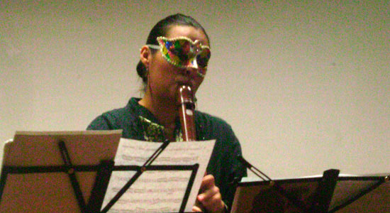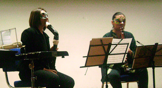 En una atmósfera de música barroca, renacentista, clásica y contemporánea, estudiantes de la Universidad De La Salle Bajío se deleitaron el jueves 20 de octubre con los sonidos de flautas y percusiones interpretadas por Carmen Romero, Carolina Ramírez, Scarlett Orozco y Gabriela Figueroa, integrantes de Rapsoda, agrupación invitada como parte de la cartelera de octubre, coordinada por el Departamento de Difusión Cultural.