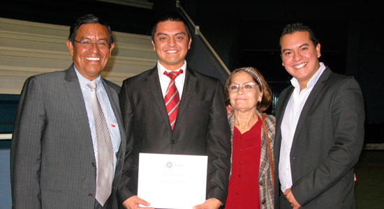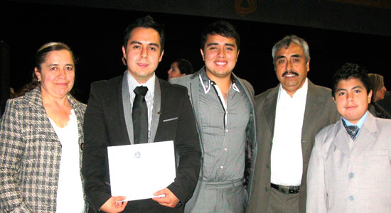 Aunado a los diplomas, la Universidad hizo entrega de la Insignia Institucional, símbolo de orgullo para quienes pertenecemos a una institución como la nuestra. Posteriormente, en compañía de familiares y amigos, los egresados disfrutaron de la interpretación musical de la Polifonía Coral de los Hermanos Pérez Urquieta y del Cuarteto de Cuerdas Ponce.