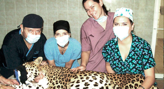 Aún más reciente, fue la cirugía realizada a un leopardo adulto del Parque Zoológico de León, mismo que presentaba lesiones en su cola. Gracias al profesionalismo de nuestros docentes y al entrenamiento que reciben los animales, el manejo anestésico se efectuó satisfactoriamente, lo que disminuyó el estrés del animal. En este caso, el equipo médico veterinario, realizó una caudectomía parcial, eliminando la zona lesionada, asimismo se aprovechó para tomar muestras de sangre y heces; además de desparasitarlo.