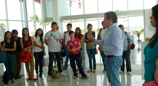A través de la iniciativa y la gestión de ECO-JES, el Ingeniero Jorge Arturo Acevedo Alarid, Director General de GTO Puerto Interior y egresado de la nuestra casa de estudios ofreció una visita guiada a los jóvenes, además de compartir los conceptos y operatividad del inmueble.