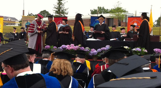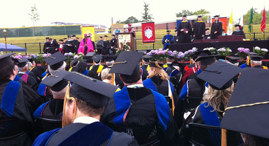 De acuerdo a la usanza de las Universidades en los Estadios Unidos quienes heredaron la tradición de las Universidades Europeas, tanto Francisco Javier como el M.I. Arturo Suástegui, desfilaron en el Campo de Futbol del campus con la vestimenta característica para la ocasión, toga y birrete, al compás de la interpretación de “Pompa y Circunstancia”. Tras ocupar sus respectivos lugares y una vez interpretado el himno de los Estados Unidos y el himno Lasallista, se procedió con tan emotiva ceremonia, misma que estuvo enmarcada por un clima húmedo y con ligeras lluvias. Al final, un brindis y bocadillos en el gimnasio del campus dieron fin al evento.