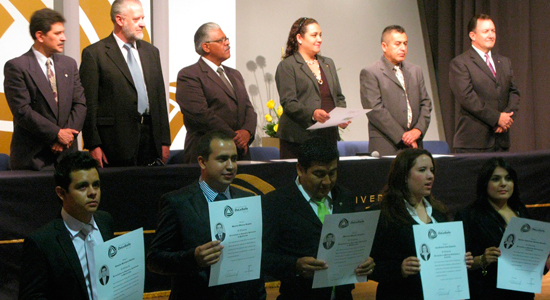“Para obtener la titulación ante el Centro Nacional de Evaluación para la Educación Superior (Ceneval), fue necesario acreditar que cuentan con las competencias necesarias para ejercer la profesión que eligieron y esto implica no sólo el dominio de la teoría sino también la capacidad de aplicarlo en la realidad. Esta evaluación la realizaron, no sin el temor que implica el riesgo de mostrar las propias debilidades ante un organismo externo”, indicó Méredith Moreno Martínez, Directora de Servicios Escolares, durante el emotivo mensaje que dirigió a los nuevos profesionistas.