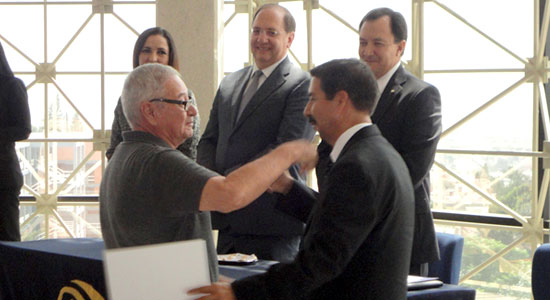 El también ex alumno, Jorge Gómez Salazar hizo entrega de los reconocimientos. Posteriormente, el MVZ. Eduardo Hernández llevó a cabo la imposición de la insignia lasallista, un acto muy significativo para quienes sienten el orgullo de haber formado parte de esta institución.
