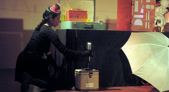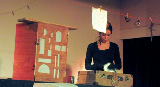 “…la ciudad nunca ha sido como estar afuera, la ciudad es siempre estar adentro e imaginarse que todo está adentro, contigo, cuidándote”,menciona uno de los diálogos, autoría de Shaday Larios, intérprete y directora de este grupo-laboratorio que desde 2003, se ha dedicado a la investigación escénica, concentrado en las posibilidades de la pequeña escala: objetos, maquetas, muebles, juguetes, sombras, títeres-híbridos, artefactos.