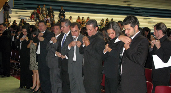 Los egresados recibieron por parte de José Amonario Asiáin Díaz de León, Vicerrector de esta casa de estudios, la insignia institucional que identifica a todos aquellos alumnos que pasan por las aulas de la Universidad y terminan sus estudios. “Un símbolo que da identidad a su formación Lasallista basada en la fe, la fraternidad y el servicio”, señaló durante su discurso Díaz de León.